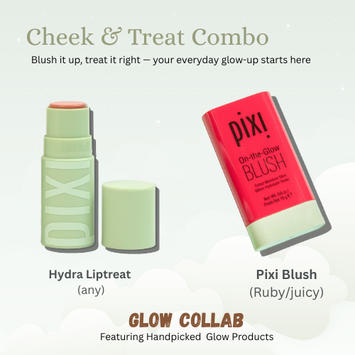 Glow up your day with the perfect duo! The Cheek and Treat Combo pairs one Pixi On-The-Glow Blush for that effortless, radiant flush with one Hydra LipTreat to deeply nourish and tint your lips. It’s the ultimate glow-and-go set — light, hydrating, and made for daily wear.